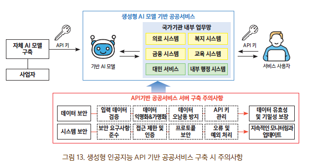 - AI 모델 기반 AI 서비스를 외부·전용망에 구축할 경우, 기관 데이터 유출에 주의해야 한다.