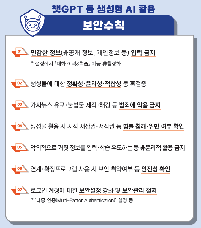 그럼 지금부터 이런 보안 위협에 생성형 인공지능 사용 가이드라인을 살펴보겟습니다.
