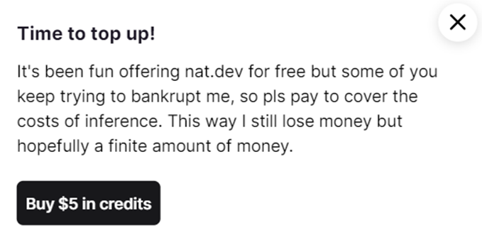 nat.dev를 무료로 제공하는 것은 재미있었지만