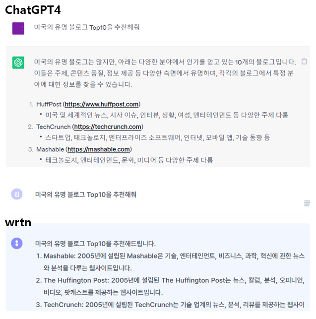 여기서 잠깐 뤼튼과 ChatGPT4에서 각각