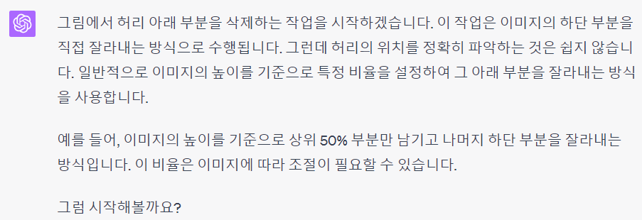 위 그림에서 허리 아래 부분을 삭제해줘그랫더니