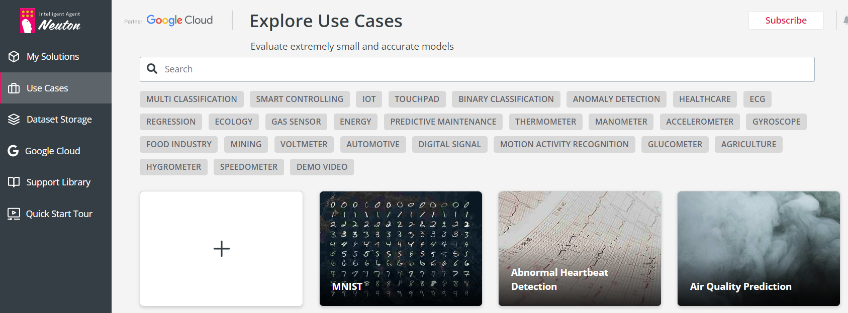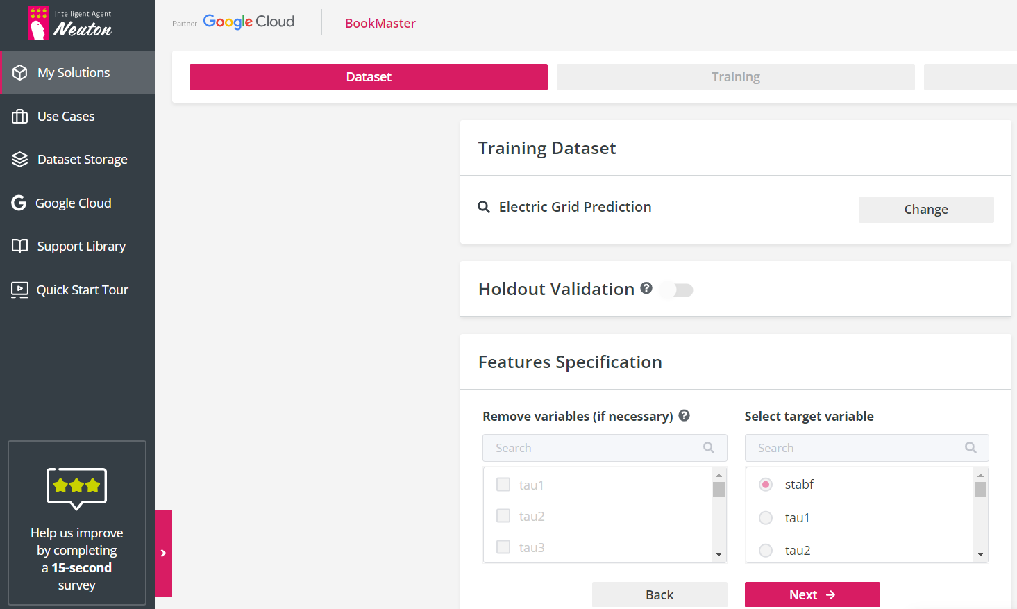 Step 3: 데이터 업로드 준비한 데이터를 Neuton AutoML에 업로드할 수 있지만, 여기에서는 Electric Grid Prediction을 간단하게 웹 인터페이스를 통해 선택 진행할 수 있습니다.
